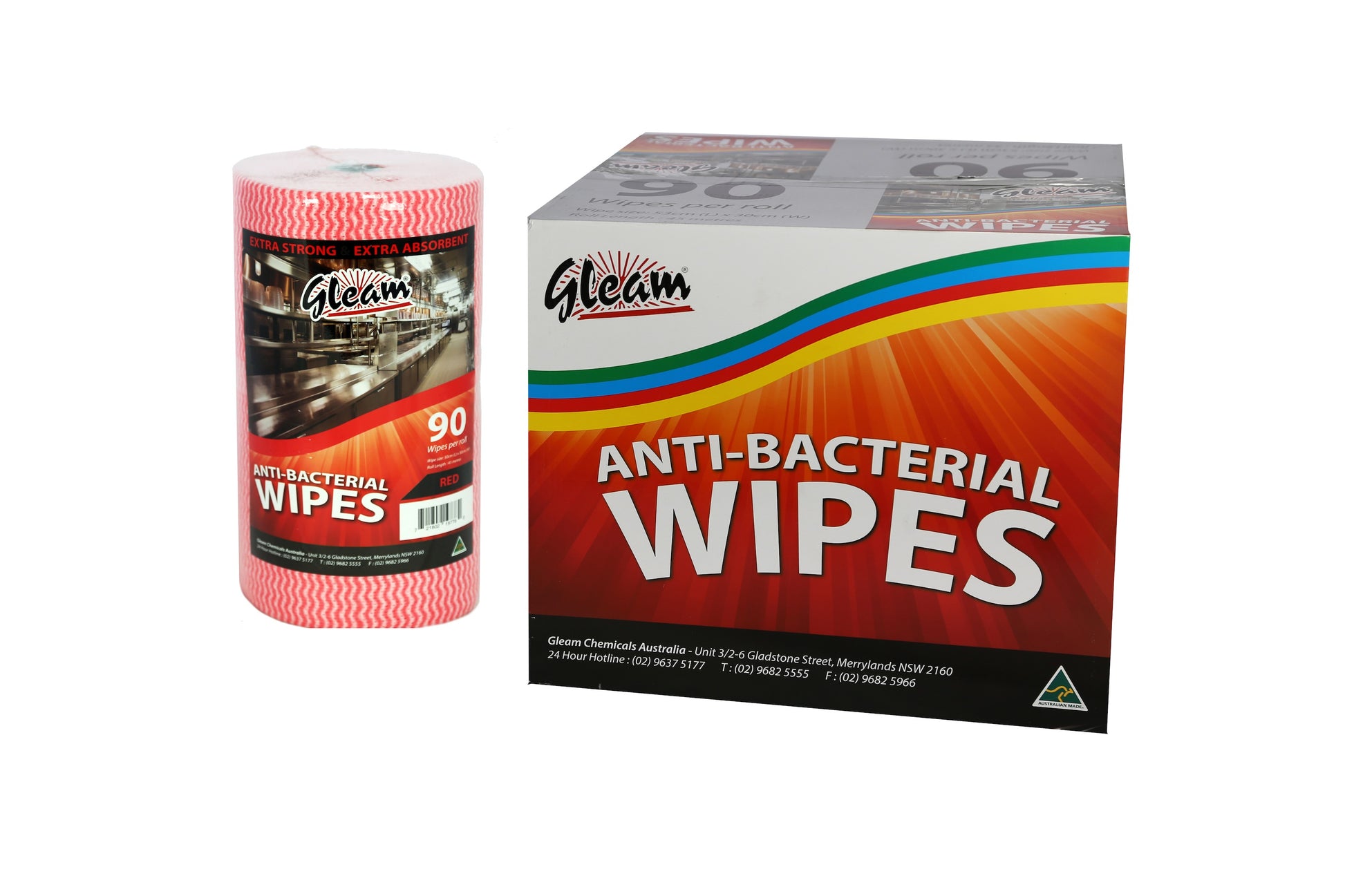 90 wipes per roll. 530 x 330 mm. 45m in length. Food service wipes available in blue, green, yellow and red