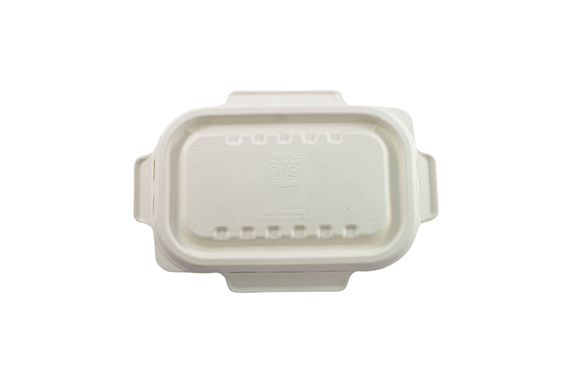 Na:Pac containers are made from compostable and biodegradable bagasse. The materials are renewable and offer durability with insulation and microwave, refrigerator, hot and cold food functionality. The lids are also made of bagasse and feature a locking tab that folds under the container.